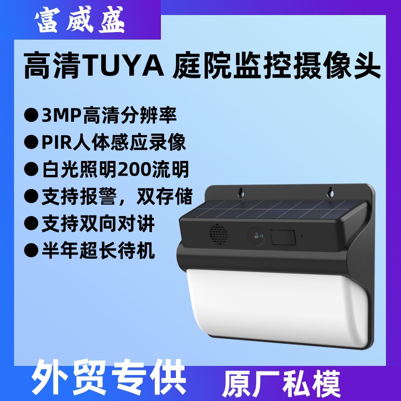 跨境太阳能监控庭院灯照明户外涂鸦WiFi云存储低功耗防水监控摄像