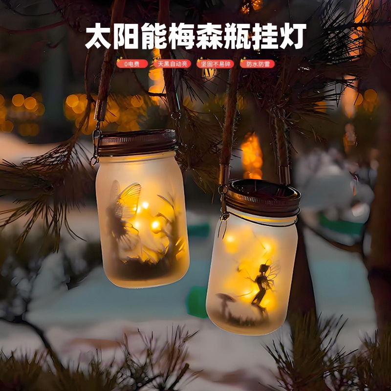 Lampu Botol Mason Tenaga Surya Lintas Batas Luar Ruangan Tahan Air Menggantung Lampu Taman Lampu Taman Dekorasi Lampu Malam Villa Suasana