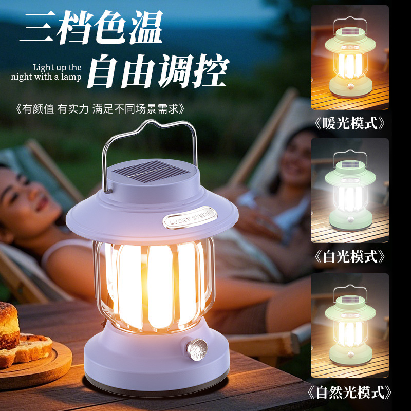 Lampu Berkemah Retro Kreatif Lampu Berkemah Luar Ruangan Tenaga Surya Lampu Berkemah Multifungsi Lampu Berkemah LED Jinjing