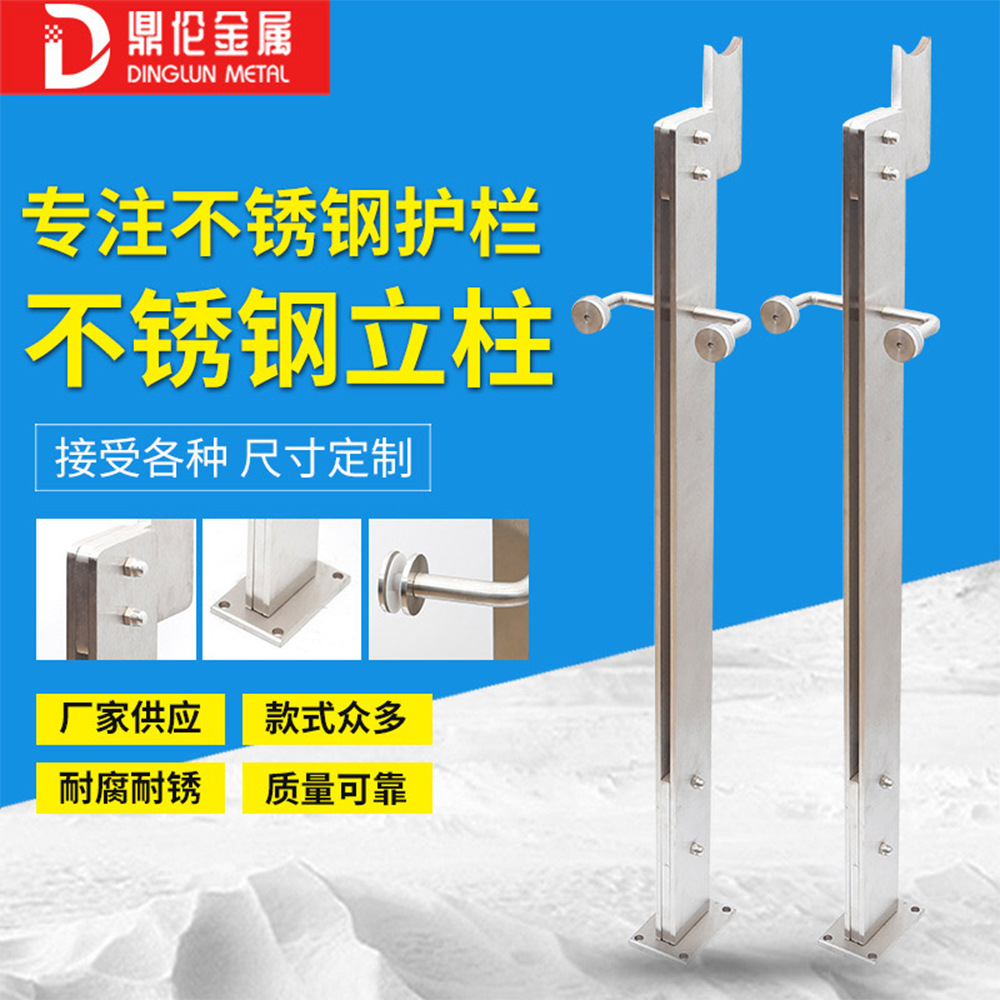 Produksi pabrik kolom baja tahan karat 304 kolom tangga pegangan tangan mal belanja teknik kaca pagar kolom baja tahan karat