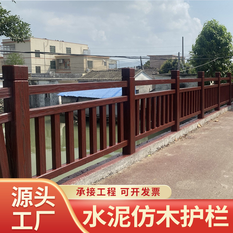Pagar semen kayu imitasi pemandangan luar ruangan pagar sungai kolam ikan pemandangan taman tepi sungai semen pagar kayu imitasi