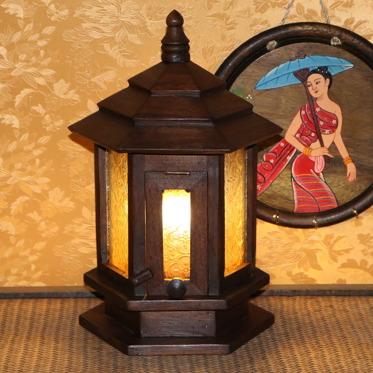 Lampu taman lanskap luar ruangan lampu taman retro impor Thailand lampu kayu solid Asia Tenggara dengan penutup kaca