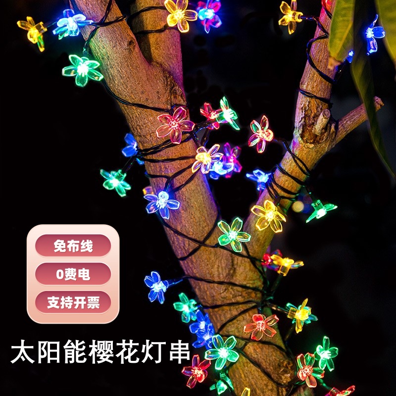 Lampu led bunga sakura luar ruangan, lampu led tali natal gelap otomatis terang