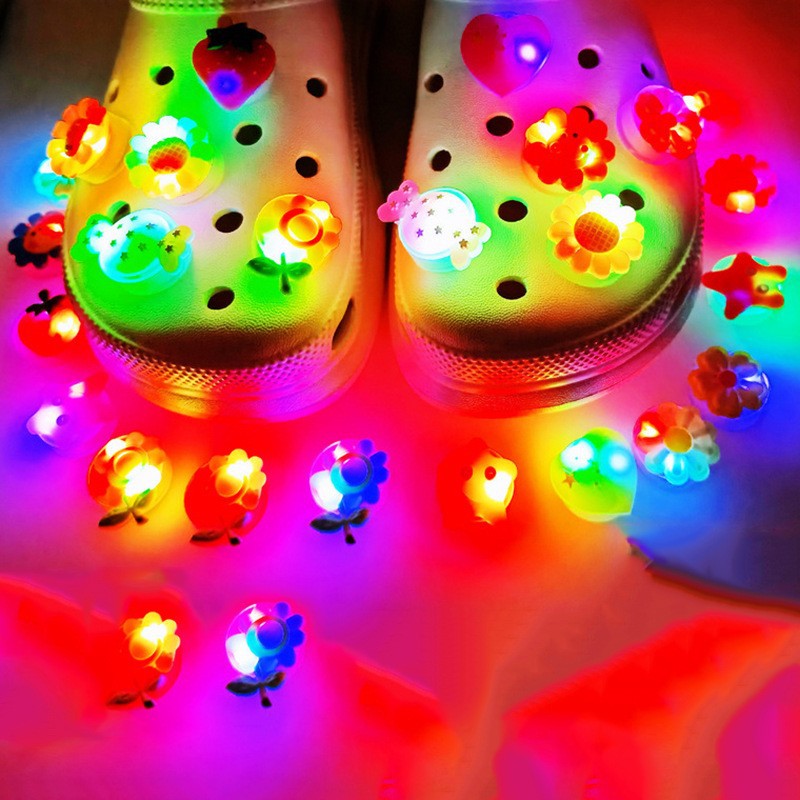 Aksesori sepatu lubang baru lampu kedip LED, sepatu elektronik gesper sepatu bunga taman sepatu getaran ringan gesper bunga grosir