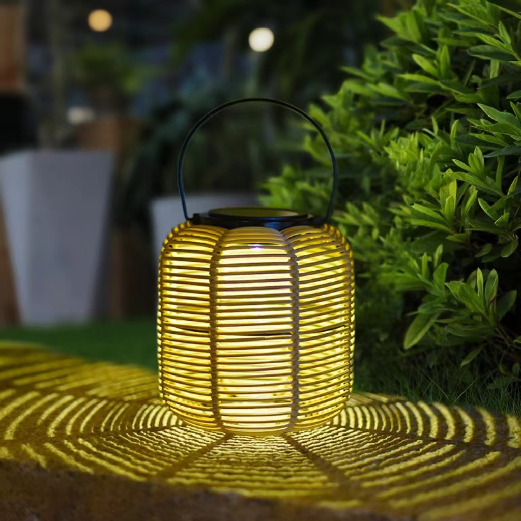 Lampu dekorasi taman, lentera rotan buatan tangan Solar portabel bentuk lentera rotan, lampu taman dekoratif