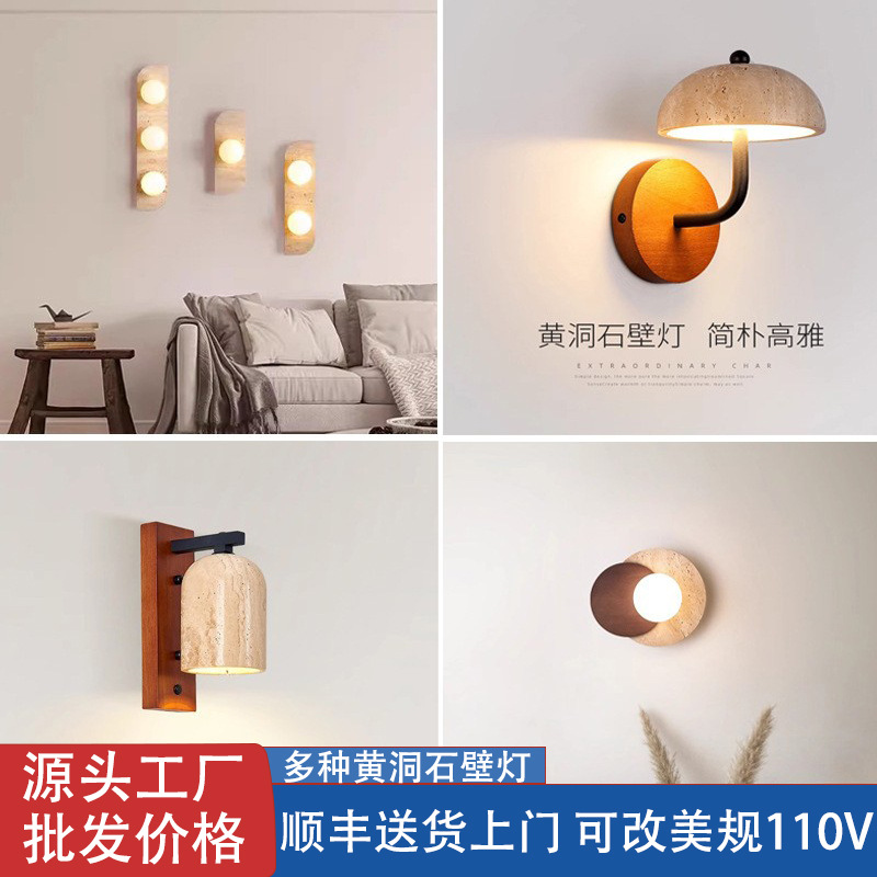 侘寂风简约黄洞石壁灯卧室现代走廊创意样板房过道客厅酒店床头灯