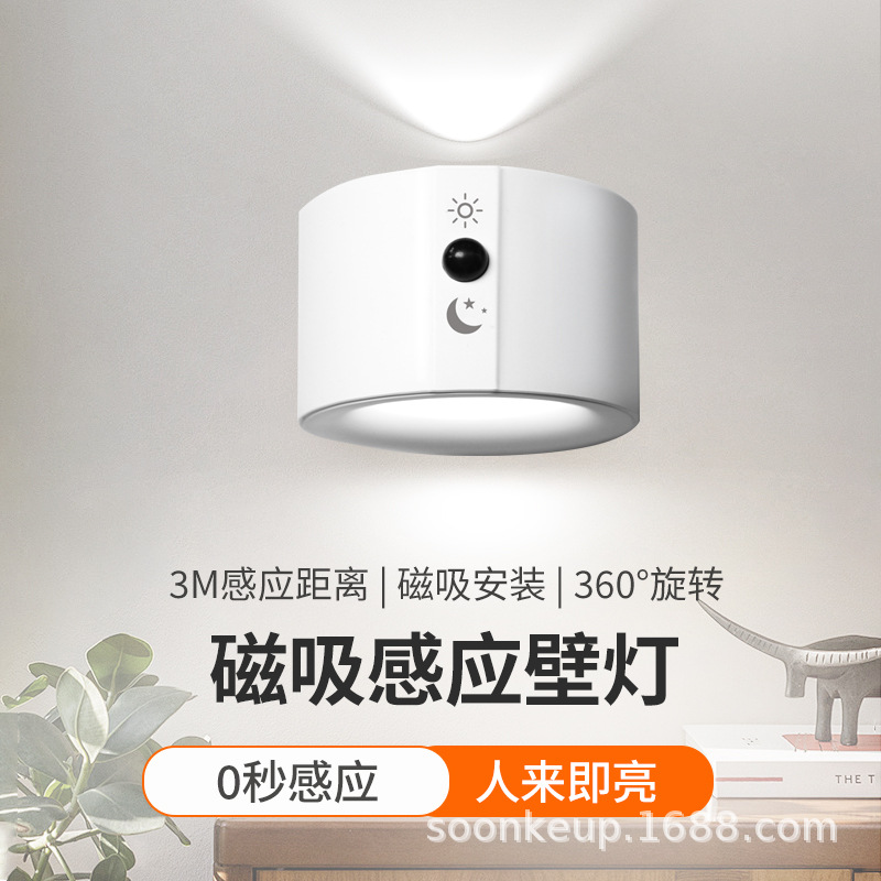 智能人体感应壁灯充电免布线卧室床头灯阅读灯过道玄关遥控小夜灯