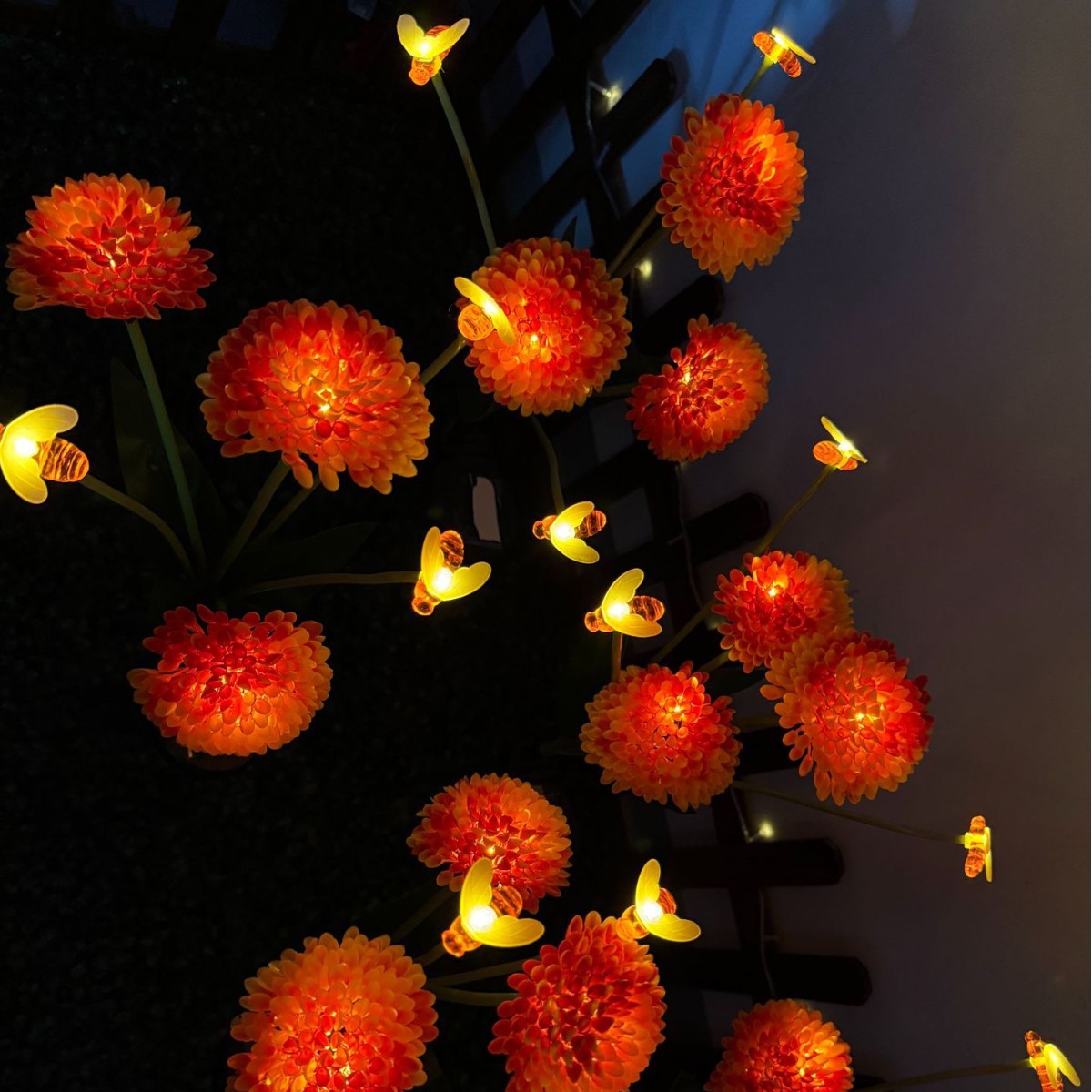 Lampu Bunga Sarang Lebah Energi Surya Lampu Rumput Dekorasi Taman Halaman Luar Ruangan 3 Kepala Replika Sarang Lebah Bunga Lampu Lantai