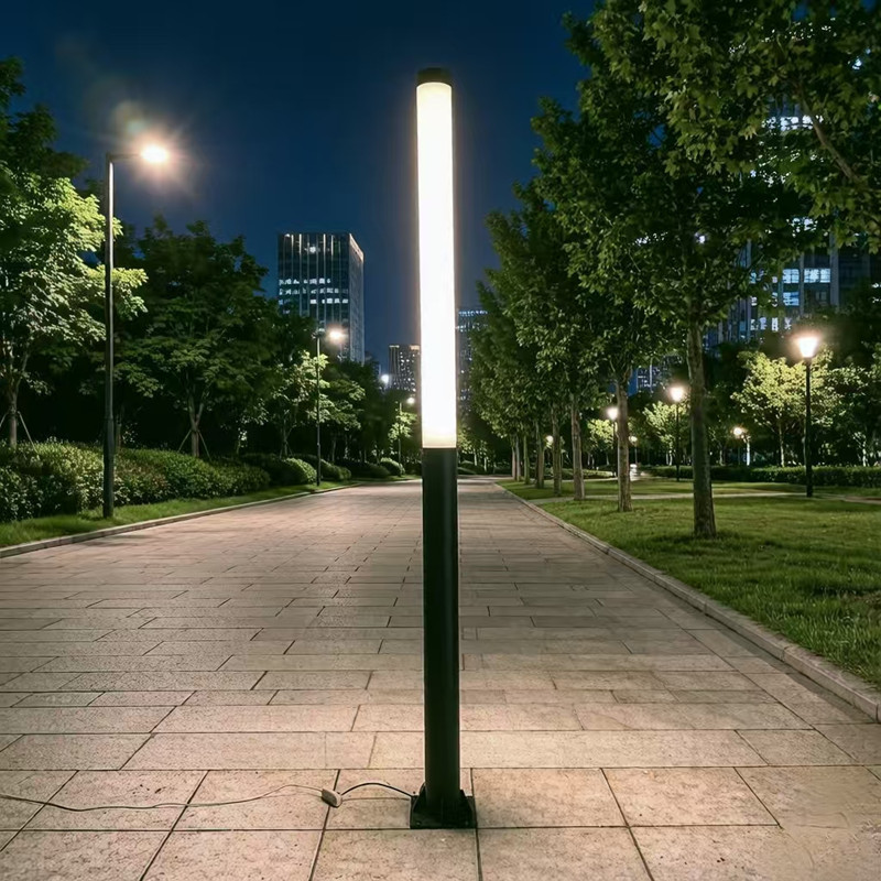 Lampu Taman Bentuk Silinder Luar Ruangan 3 Meter Kap PC Akrylik Bahan Aluminium Lampu Taman LED Lampu Jalan Lanskap Lipstik Sederhana