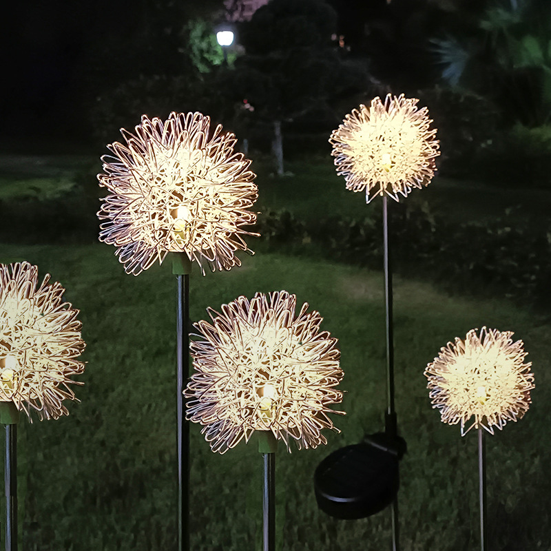 Lampu dandelion surya luar ruangan kawat aluminium bercahaya suasana taman lampu penyisipan lantai lampu taman rumput lanskap
