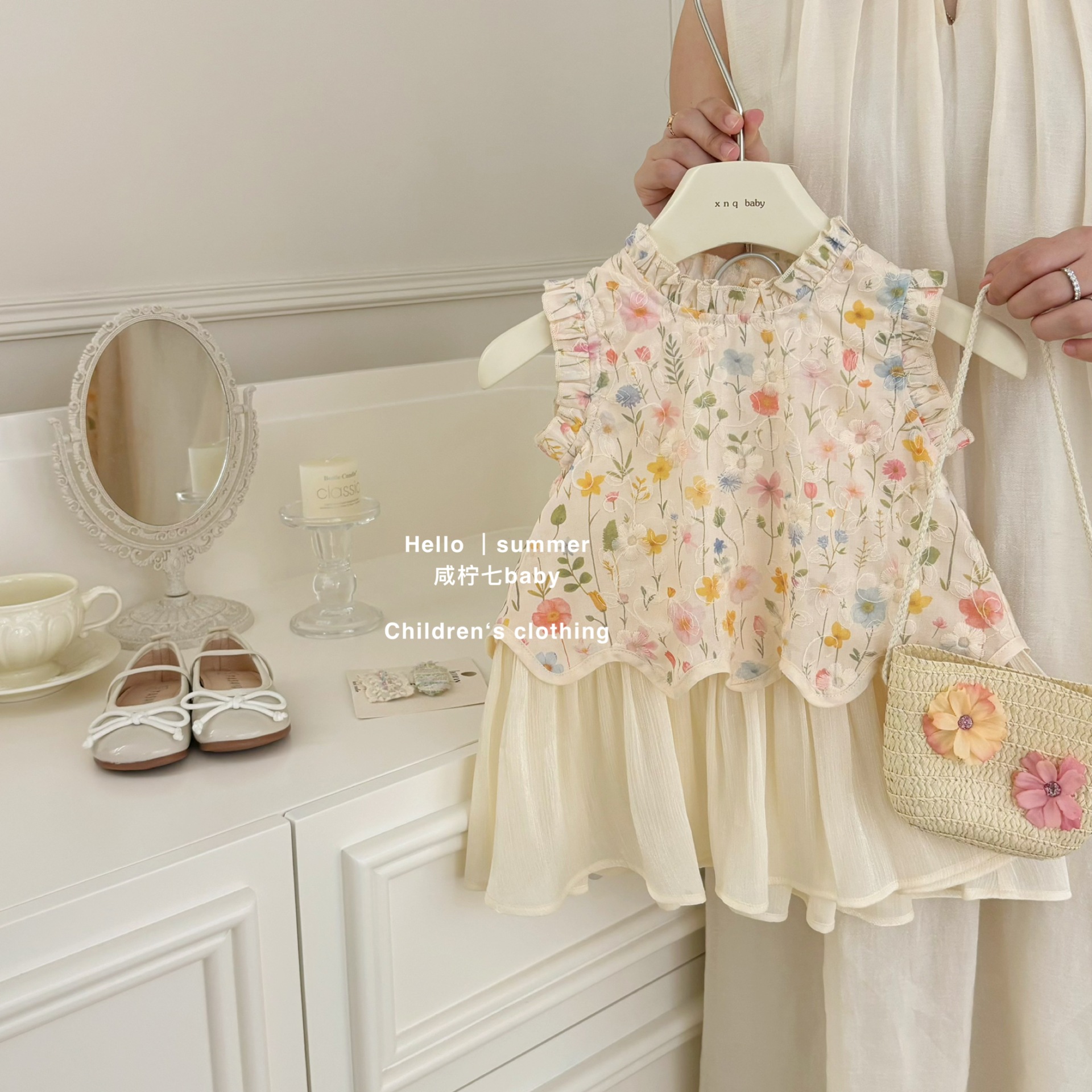 Lemon asin tujuh 丨 Monet Garden! Gaun Terusan Bunga Bayi Perempuan Versi Korea Musim Panas 2025 Rok Putri