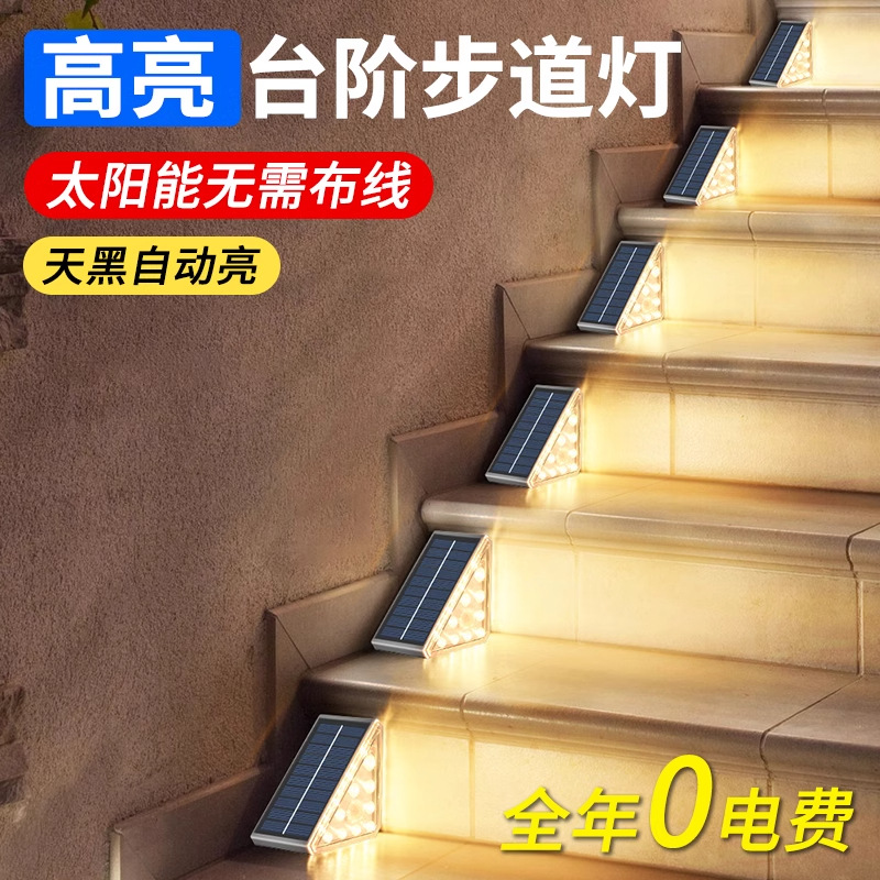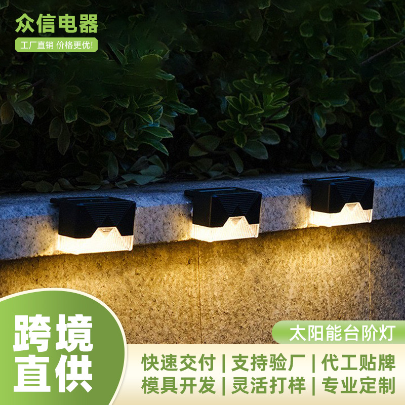 Lampu langkah surya LED tahan air baru lintas batas, lampu taman luar ruangan, lampu dinding tangga, lampu dekorasi langkah taman