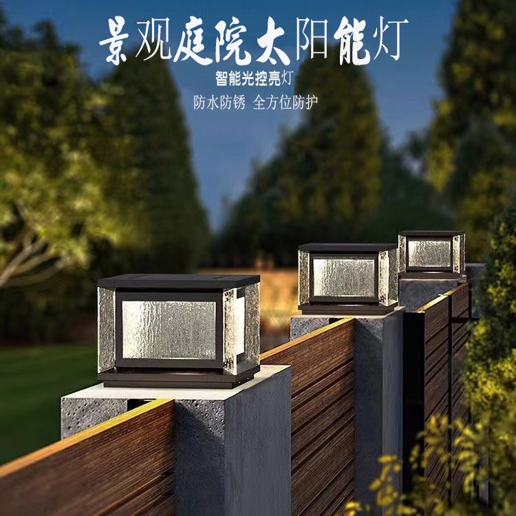 Lampu pilar luar ruangan tenaga surya, lampu taman dekorasi dinding lampu pagar pintu pedesaan baja tahan karat