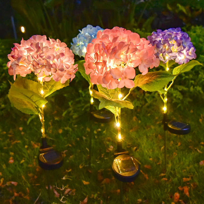 Lampu Hydrangea Batang Lampu Lampu LED Tenaga Surya Lintas Batas Luar Ruangan Dekorasi Halaman Rumput Lampu Suasana Gelap Otomatis