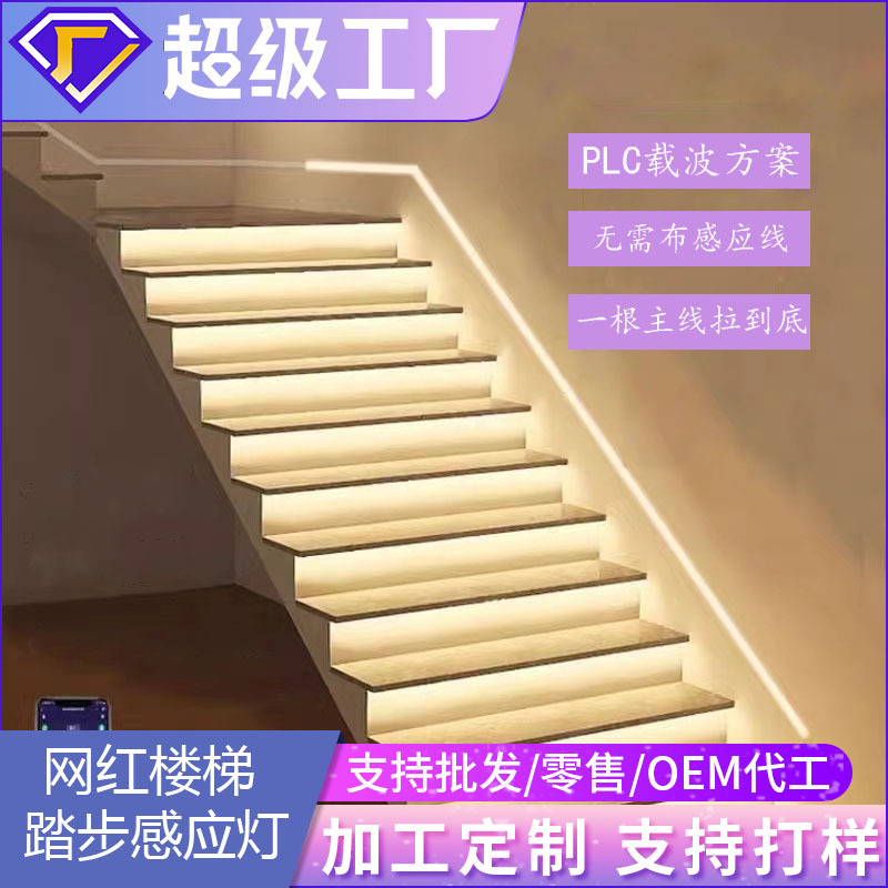 Lampu sensor tangga untuk rumah, hotel, vila, efek air mengalir, kontrol nirkabel, strip lampu sensor gelombang pembawa.
