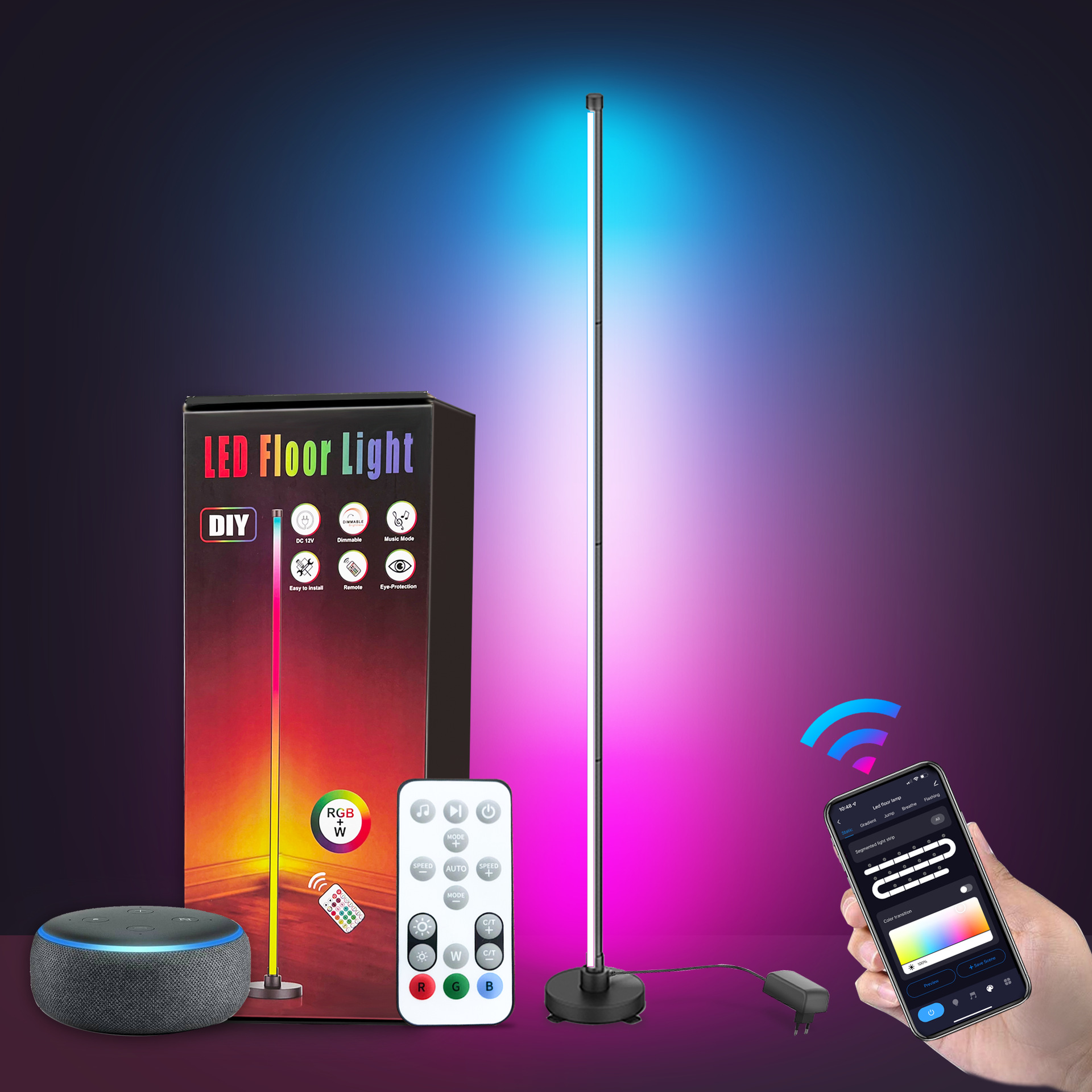 Lampu lantai grafiti WiFi 1.47 m, lampu lantai kontrol suara Alexa 5050RGBIC + WW lampu sudut