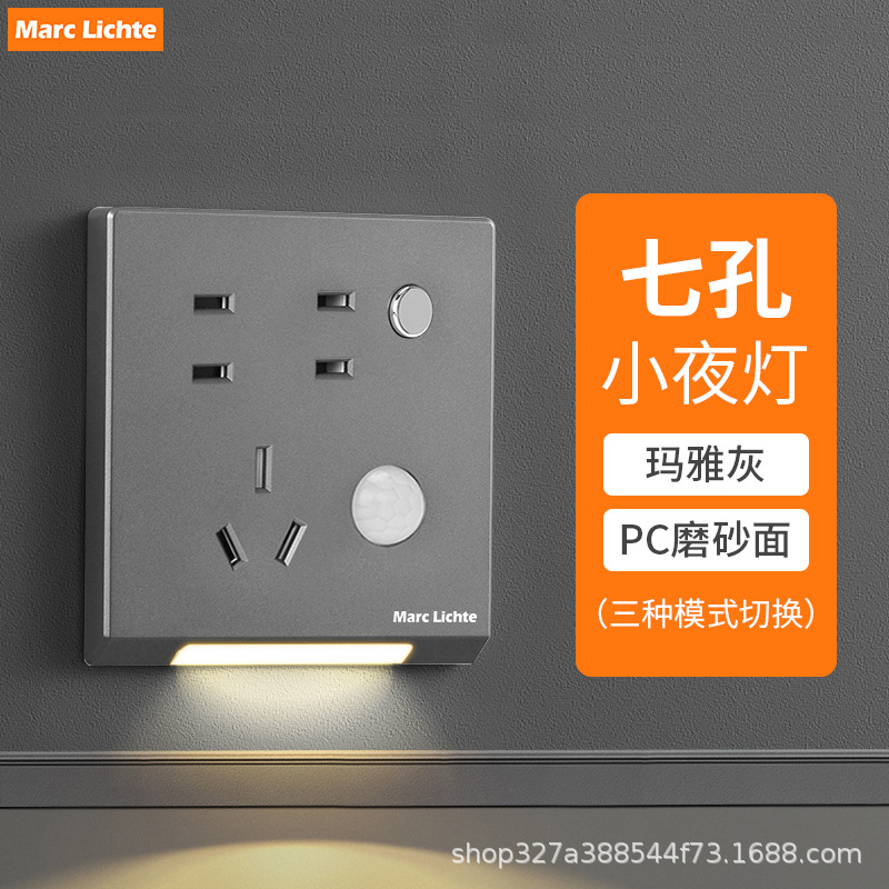 Mark abu-abu soket lima lubang dengan lampu kaki induksi tubuh manusia lampu malam koridor samping tempat tidur tertanam lampu malam