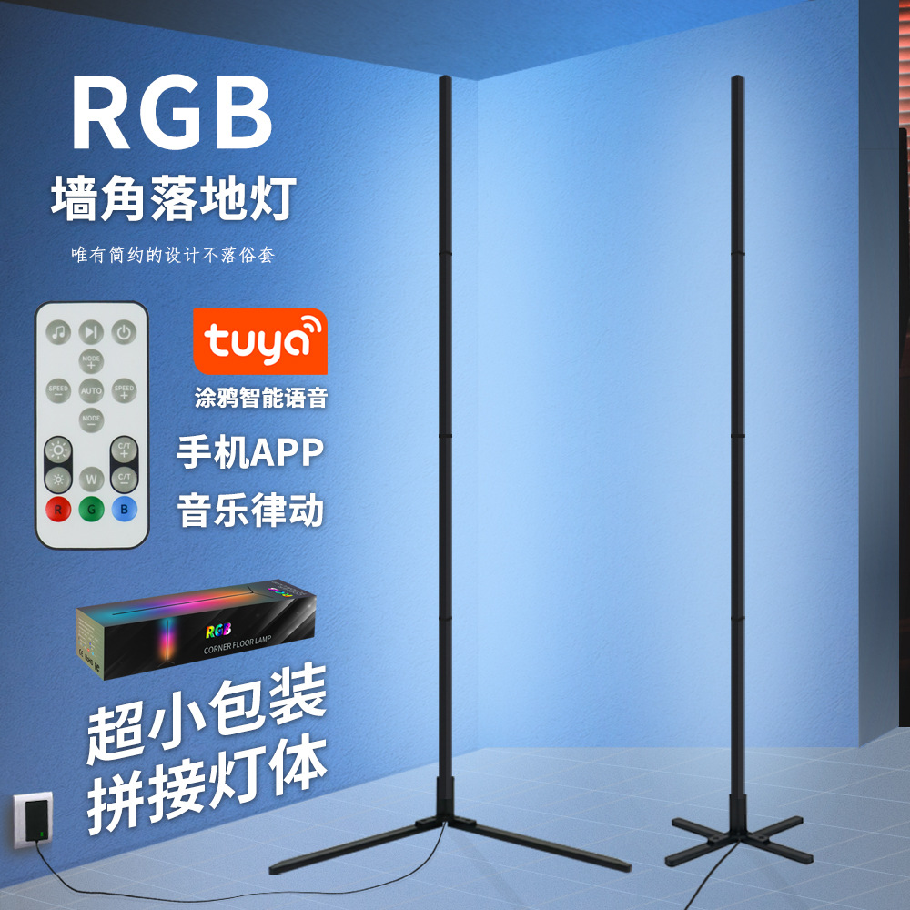 Pasokan lintas batas RGB warna-warni lampu lantai warna ajaib tiga-garpu lampu sudut ruang tamu strip warna-warni lampu suasana minimalis