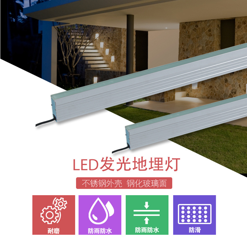 Lampu garis LED bawah tanah, lampu pencahayaan luar ruangan lantai linear kotak luar ruangan