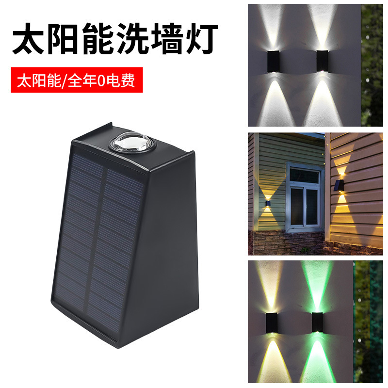 Lampu Dinding tenaga surya, lampu tembok cuci warna-warni RGB luar ruangan tahan air, atmosfir taman, atas dan bawah