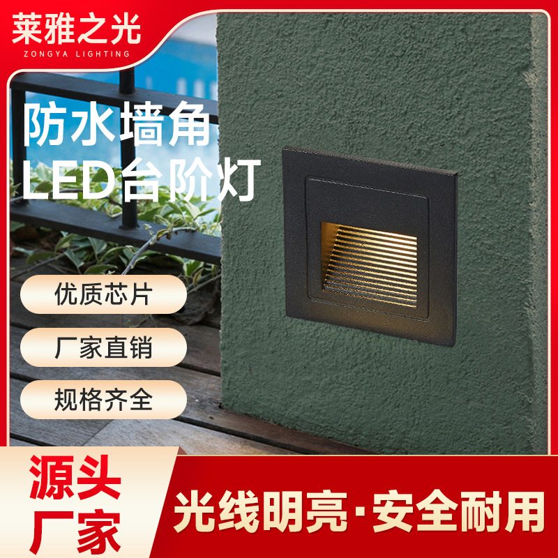 Grosir Pabrik lampu tangga LED tanam cahaya langkah luar ruangan tahan air lorong koridor tangga grosir lampu sudut