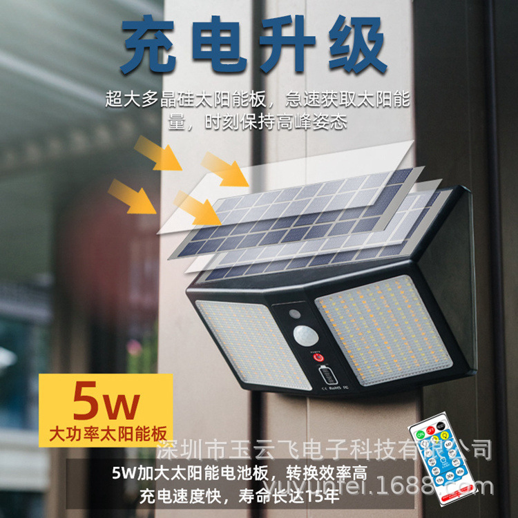 Lampu dinding tenaga surya, lampu pencahayaan tiga warna pengendali jarak jauh induksi lampu jalan USB dapat diisi ulang