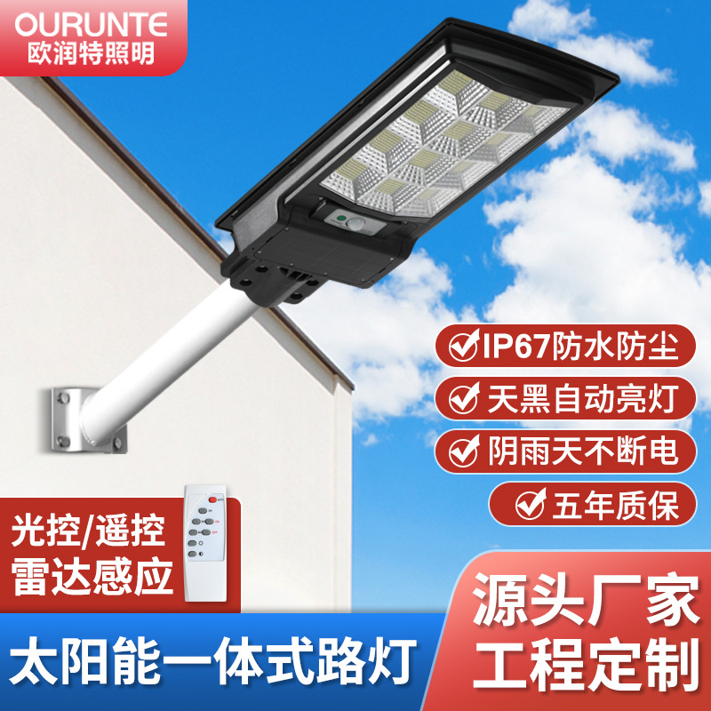 Ou runce lampu jalan tenaga surya terintegrasi, lampu led super terang, lampu induksi tubuh manusia, lampu luar ruangan tenaga surya