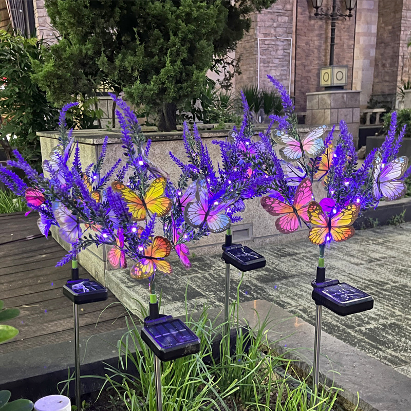 Lampu Selip Lantai Lavender Kupu-kupu Surya Selip Lantai Halaman Luar Ruangan Warna-Warni Villa Rumput Taman Dekorasi LED