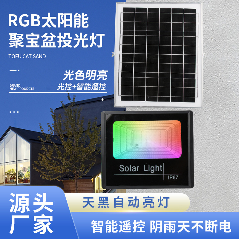 Lampu banjir tenaga surya RGB, cahaya sorot warna-warni suasana halaman pedesaan rumah baru luar ruangan