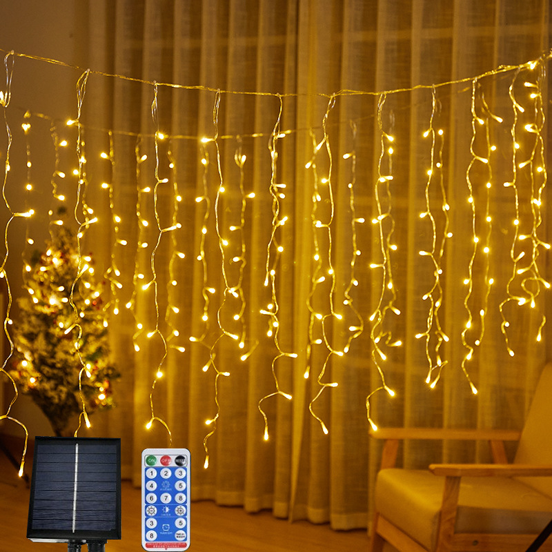 Lampu LED setrip es LED tenaga surya, lampu dekorasi air terjun langit berbintang taman romantis liburan