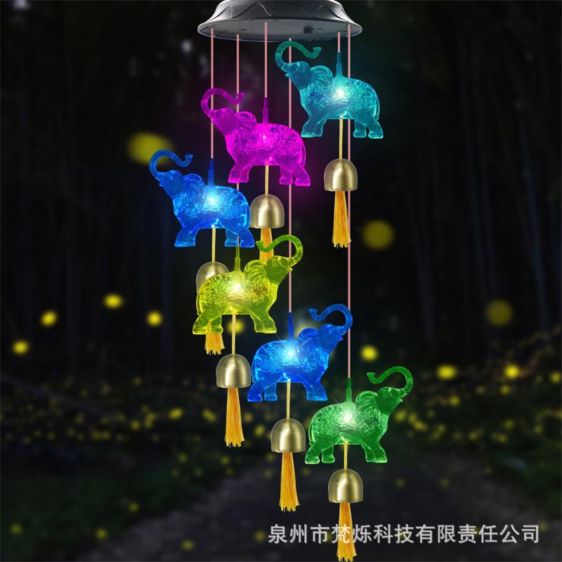 Lampu led tenaga surya lintas batas, lampu dekorasi pola gajah dengan bel angin luar ruangan halaman Amazon