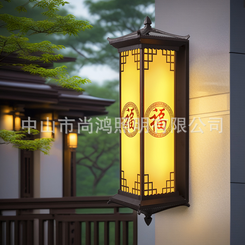 Lampu Dinding Surya Gaya Tiongkok Baru Balkon Tahan Air Luar Ruangan Lampu Dinding Luar Pintu Pintu Besar Area Villa