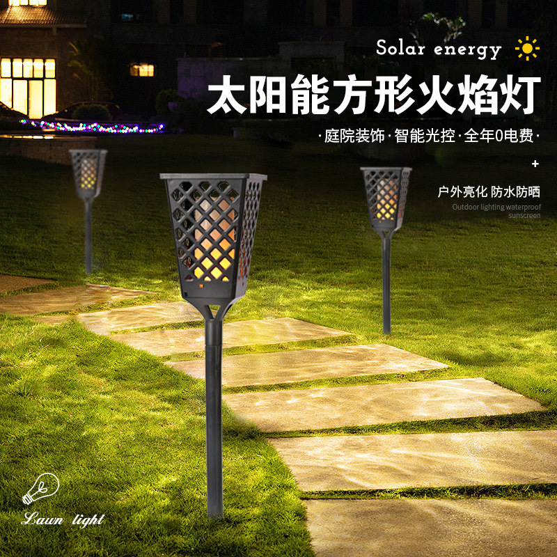 Lampu Api Persegi Tenaga Surya Lintas Batas Luar Ruangan Lampu Rang Tahan Air Lampu Sensor Lampu Rumput Dekorasi Halaman Taman