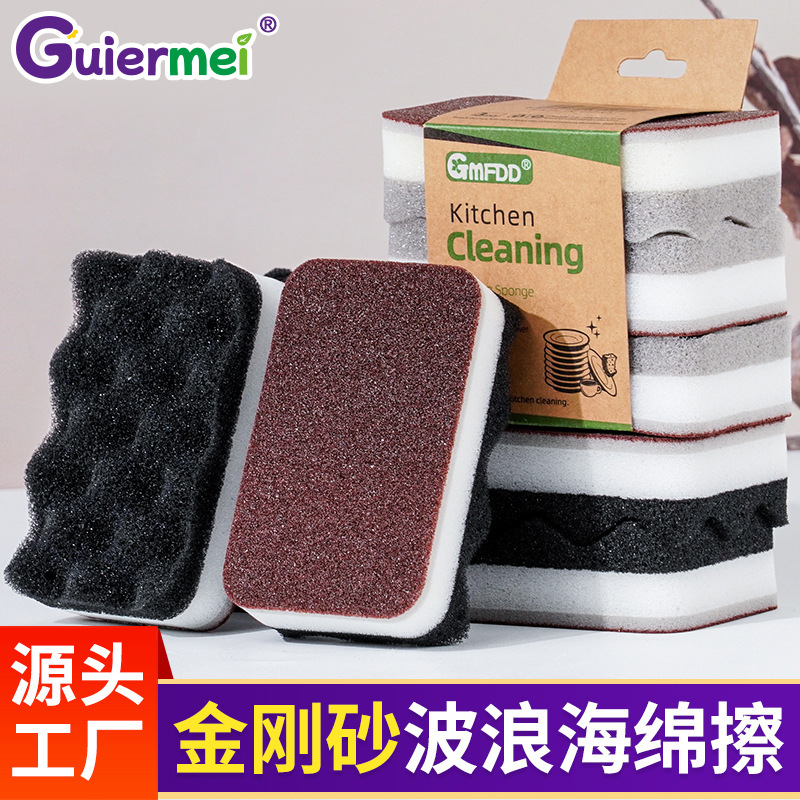 Spons penggosok gelombang kecil, panci Cuci Dapur, spons pembersih dua sisi, alas gosok penghilang karat rumah tangga