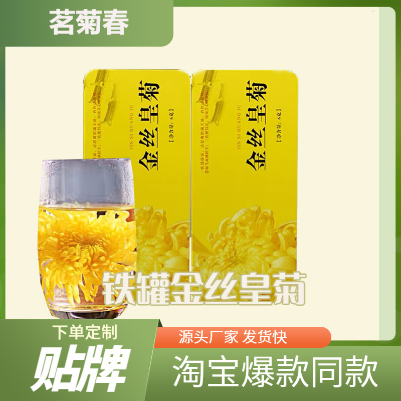 Bunga baru krisan Sutra emas bunga super besar satu cangkir 20 kotak besi teh krisan Wuyuan grosir