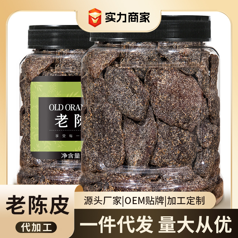 Kulit jeruk kering sembilan rasa dalam kemasan kaleng 500g untuk teh, air, buah manisan, buah kering, buah yang diawetkan, camilan santai, menenangkan tenggorokan.