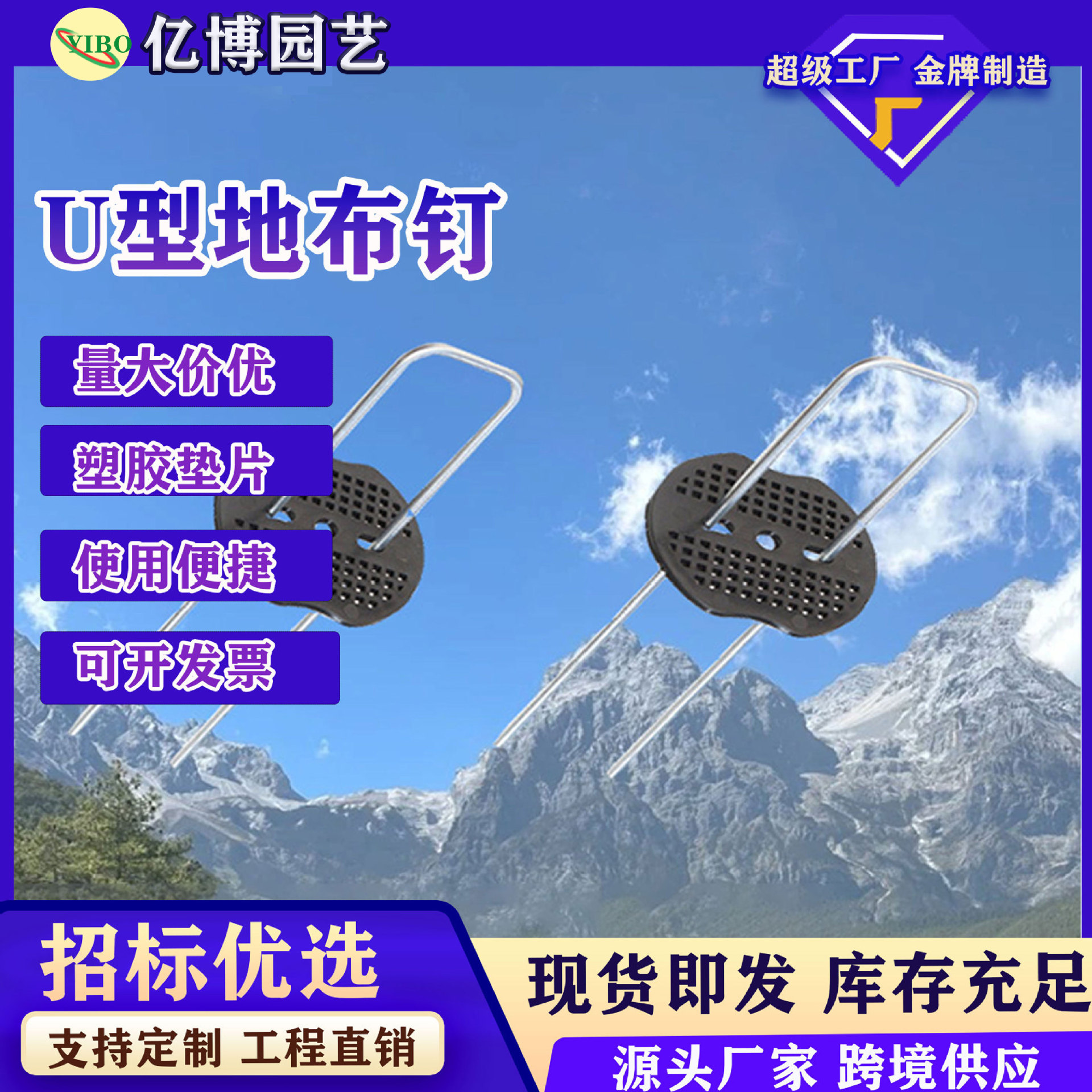 Paku tanah berbentuk U untuk pengendalian gulma, paku rumput sintetis, alat penggali untuk kebun buah, paku kain alas tanah, alat khusus pipa putih.