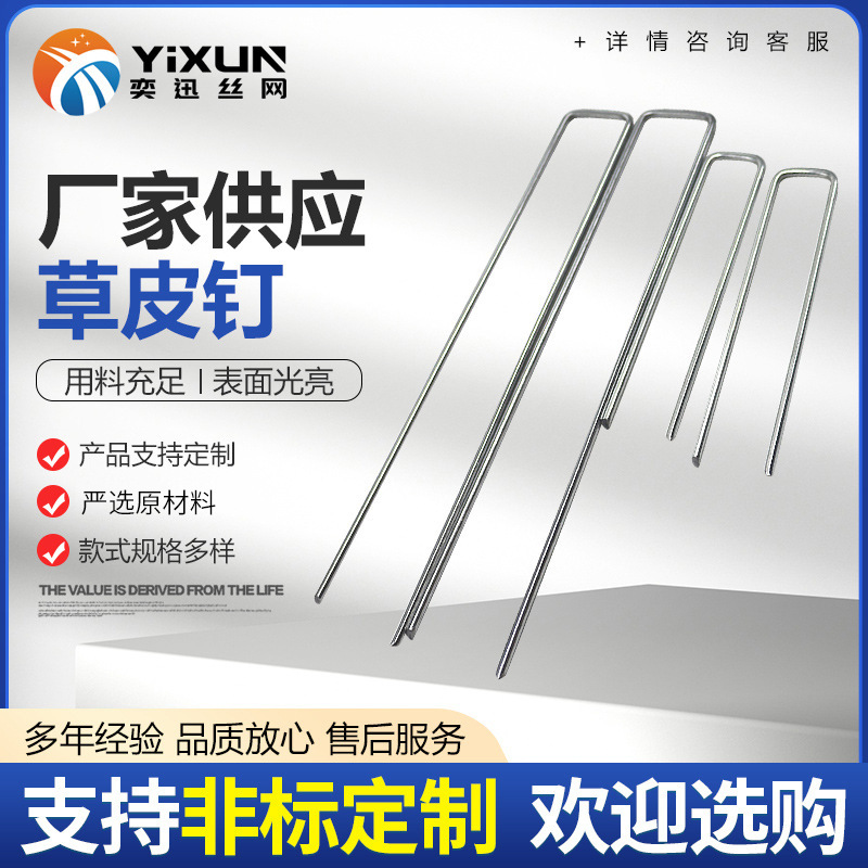 Alat berkebun kuku rumput berbentuk U pipa film tenda galvanis kuku rumput rumput tiga pin kuku tetap