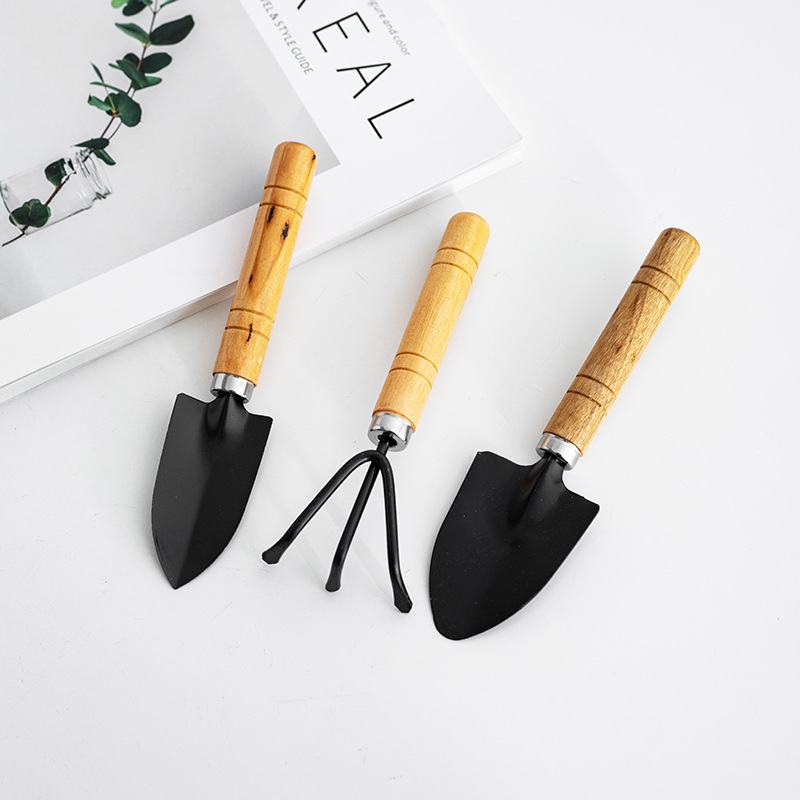 Grosir sekop kecil berkebun tiga potong set bunga menanam bunga pinus tanah pegangan kayu sekop rumah tangga menanam bunga sayuran menyapu alat sekop