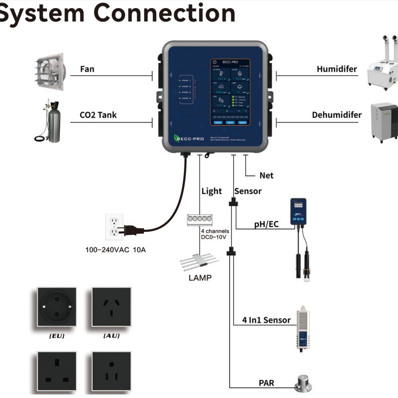 Smart Environmental Controller Suhu dan Kelembaban C02 Relay Kontrol Tanaman Mengisi Cahaya Sistem Kontrol Karbon Dioksida