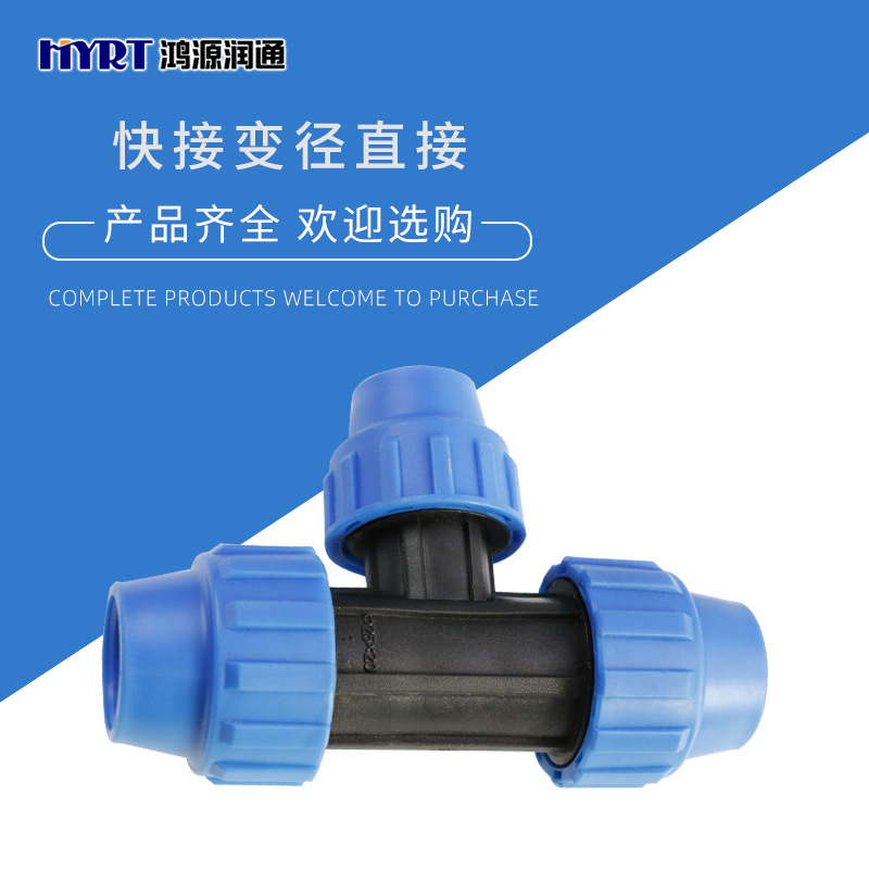 Pe pengurang sendi cepat tee plastik pipa air bersama mikro semprot tetes irigasi eksternal pengunci pipa fitting pp mengurangi tee