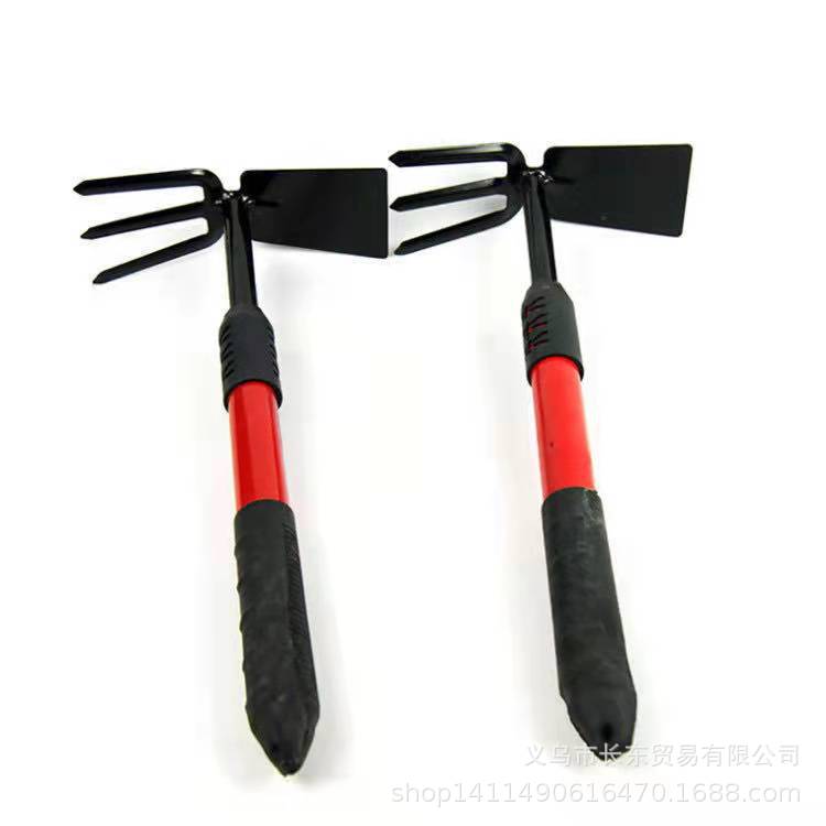 Setelan berkebun gagang merah lima-gigi garpu alat berkebun sekop bunga multifungsi ganda alat berkebun cangkul alat kebun penggaruk