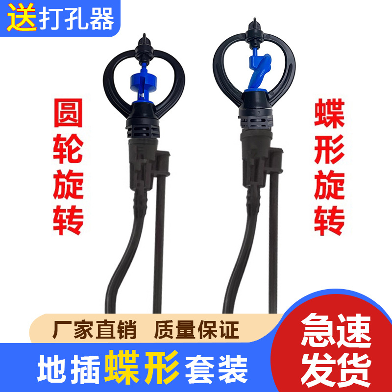 Penyisipan Tanah Kepala Penyisipan Mikro Kepala Penyiram Rotasi Rumah Kaca Kepala Penyiram Mikro 360 Derajat 4 Menit Magger Roda Bulat Kepala Penyiram Pertanian Bentuk Kupu-kupu