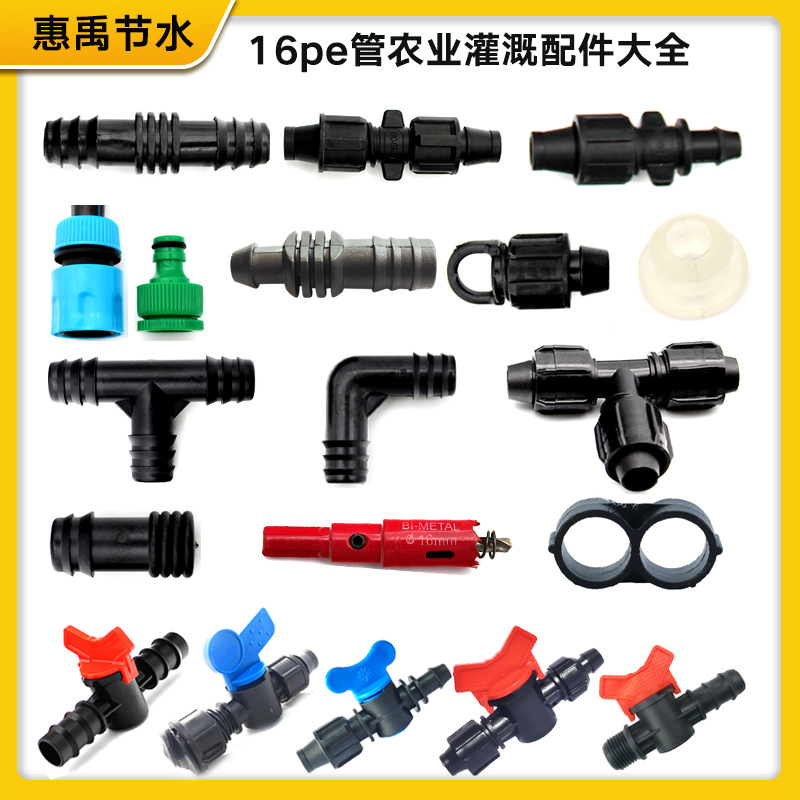 Perlengkapan pipa 16pe koleksi lengkap konektor cepat tee langsung melalui SIKU plug bypass katup saklar alat irigasi pertanian