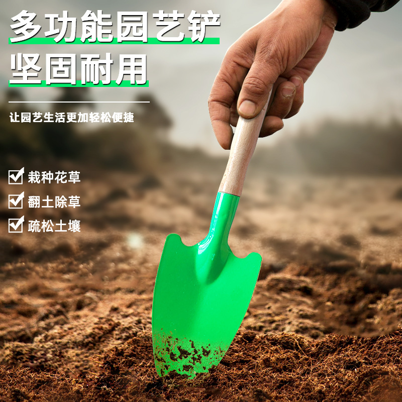 Sekop bunga kecil, dengan pegangan kayu, sekop tanam bunga, alat berkebun, sekop besi sukulen, sekop kecil untuk menanam bunga di rumah tangga