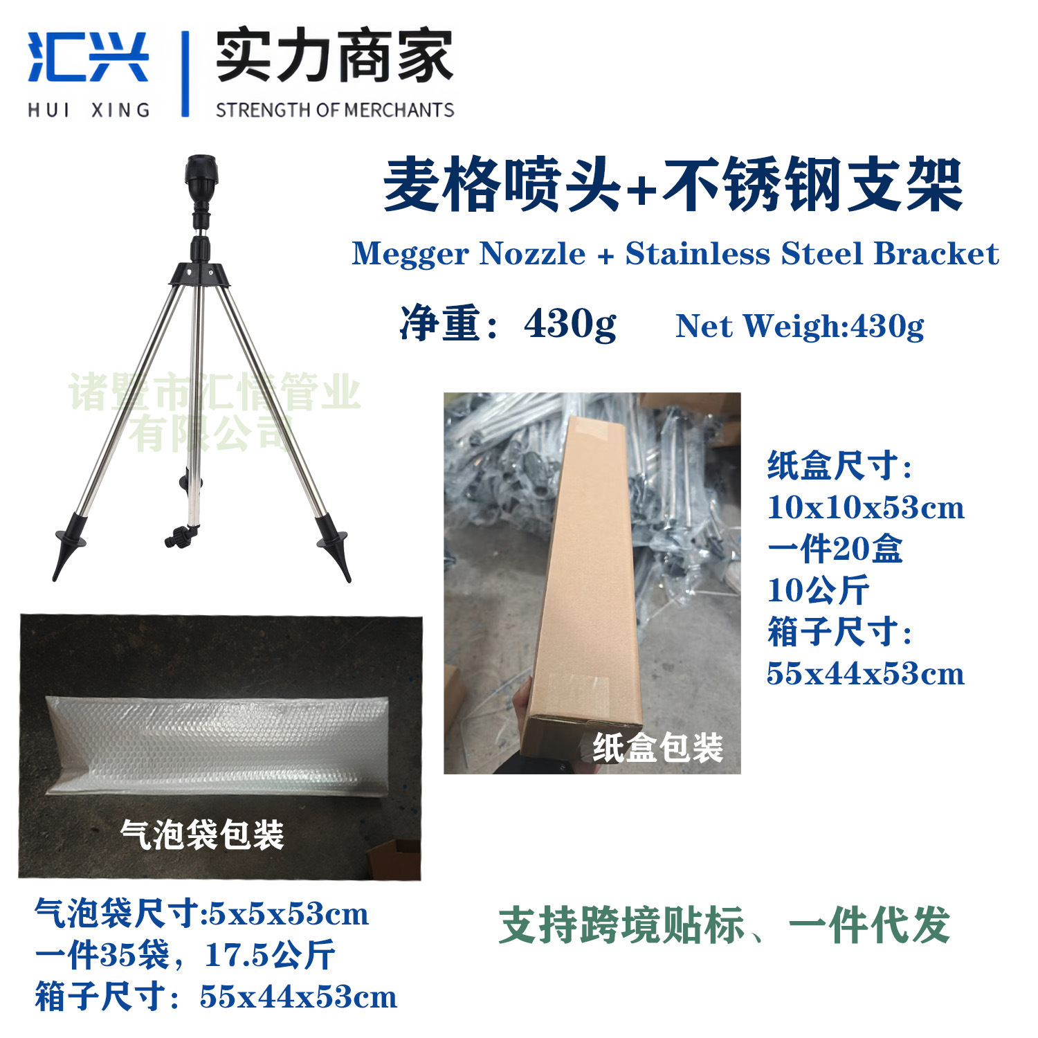 Magger sprinkler + braket tripod baja tahan karat, braket sprinkler irigasi berkebun kotak terpisah