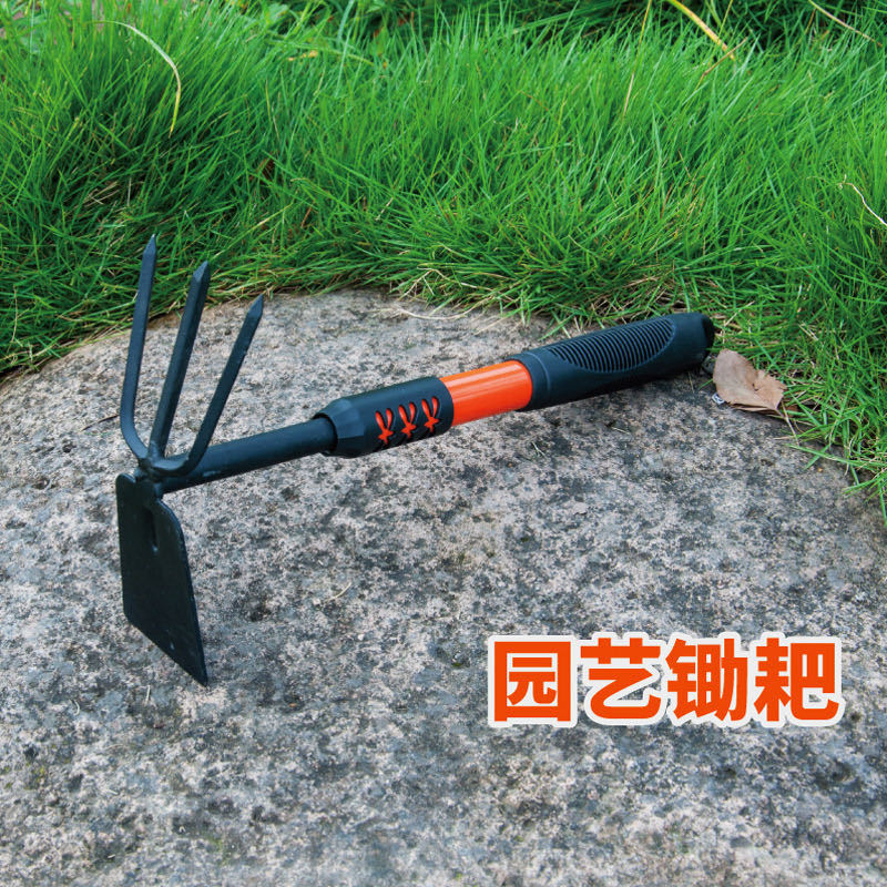Setelan berkebun gagang merah lima-gigi garpu alat berkebun sekop bunga multifungsi ganda alat berkebun cangkul alat kebun penggaruk