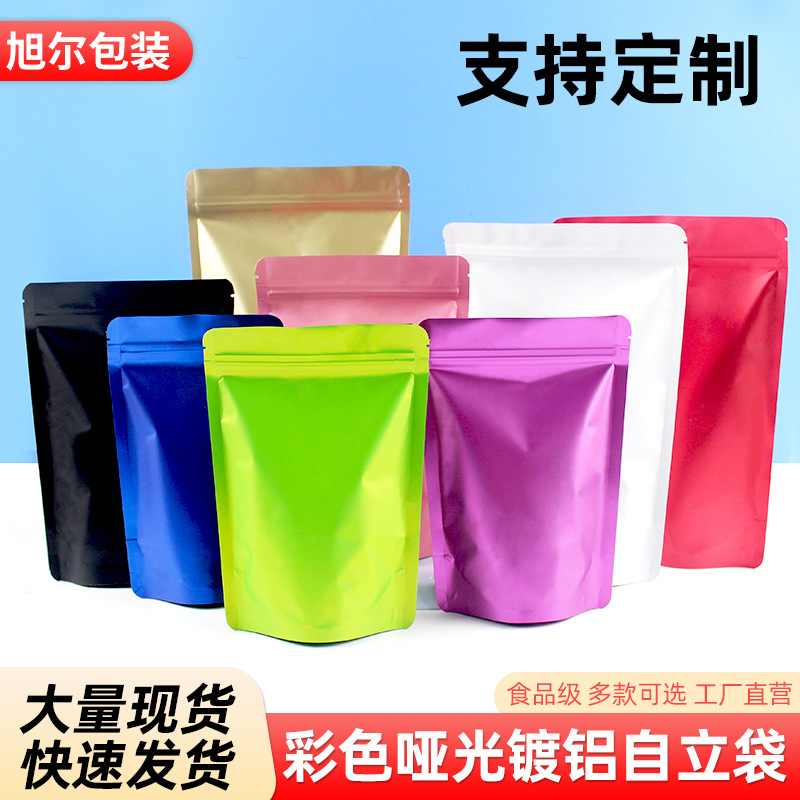Warna-warni Aluminium Foil Self-Sealing Tas Berdiri Aluminium Matte Tas Umpan Kantong Plastik Disegel Kantong Kemasan Makanan Hewan Peliharaan Grosir