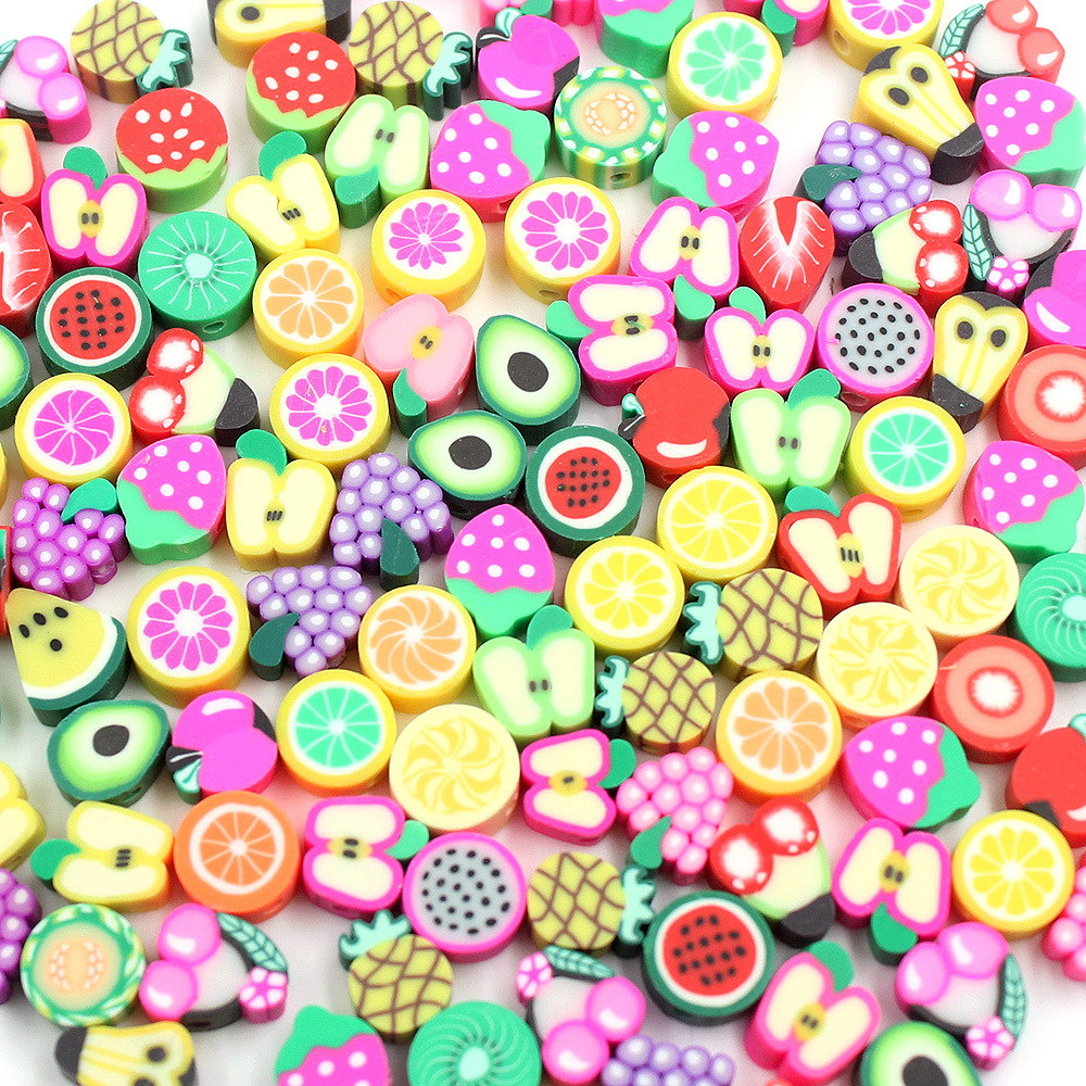 软陶珠10mm软陶切片水果橙子西瓜粘土珠儿童DIY手链项链串珠配件