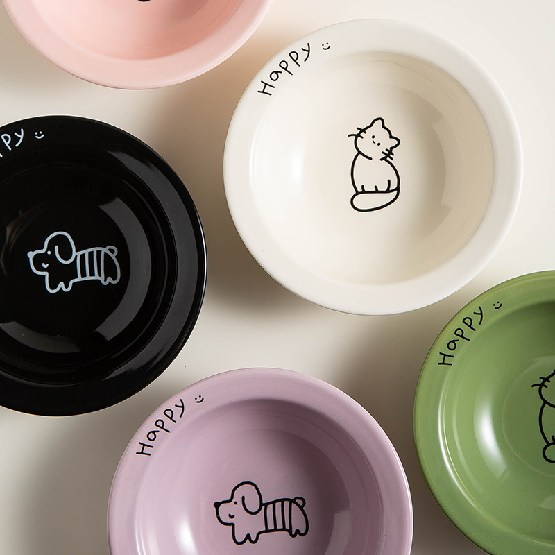 陶瓷宠物碗大口径猫碗狗碗飞碟碗喝水碗猫食盆慢食猫粮碗放黑下巴